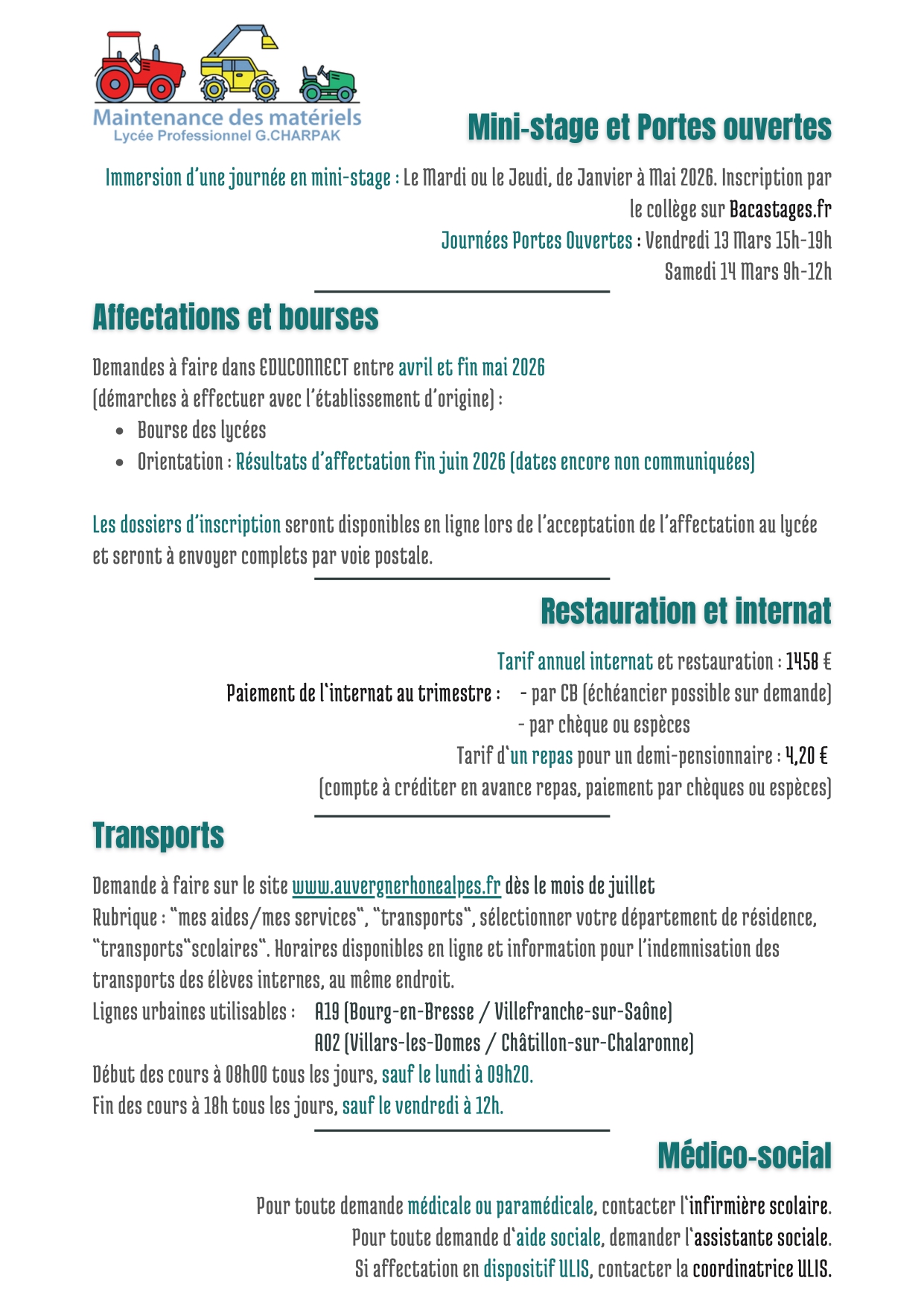 Mini Stages || Portes Ouvertes || infos pratiques